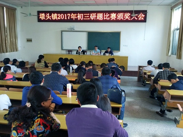 初夏时分,绿肥红瘦,正是孕育丰硕果实的时节。5月13日,墩头镇仇湖初中、吉庆初中、墩头初中三所初中的校长、教导主任以及全体初三教师共聚墩头初中会议室,举行墩头镇2017年初三教师研题比赛颁奖大会。