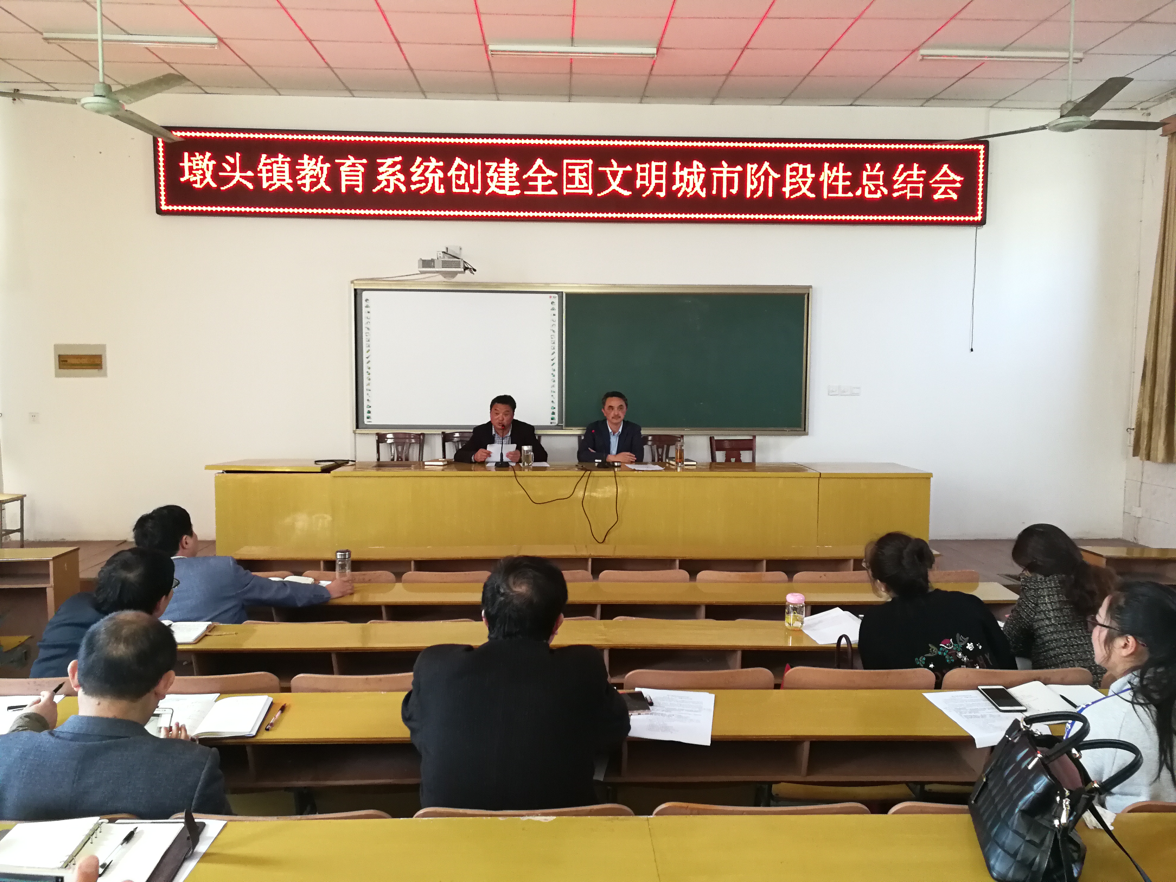5月11日,墩头镇教育系统在镇会议中心召开了创建全国文明城市阶段性总结会,全镇的正副校园长和全体教办工作人员参加了会议。