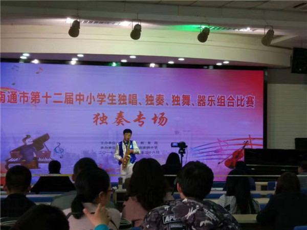3月26日,南通市教育局主办的南通市第十二届中小学生“独唱、独奏、独舞”比赛——独奏专场比赛,在南通市田家炳中学举行。经过紧张激烈的角逐,吉庆初中选送的参赛选手孔子贤同学以近乎完美的演奏,毫无争议地获得西洋其他比赛初中组一等奖并以绝对的实力获得一等奖第一名的好成绩。