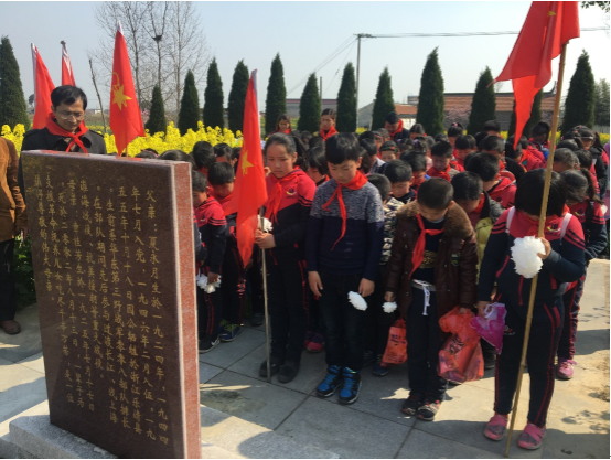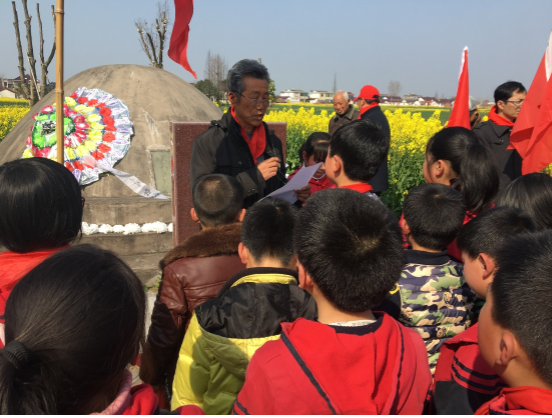 活动由蒋周励主持,请校外关工委辅导员孙宏舜讲烈士事迹,然后学生代表陈润语讲话、关工委主任讲话,最后由陆秀梅老师带领孩子们庄严宣誓:缅怀先烈,回顾历史,学史立志,开创未来!