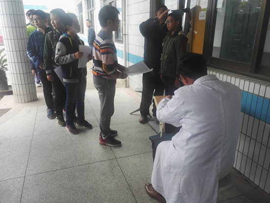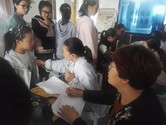 在学校领导的统筹安排下,在班主任、任课教师、全体学生以及卫生监督员的密切配合下,通过医务人员的通力协助,全校学生按年级次序依次针对视力、身高、体重、心肺、 血压、 口腔 五官 等项目进行了检查。整个过程井然有序 。