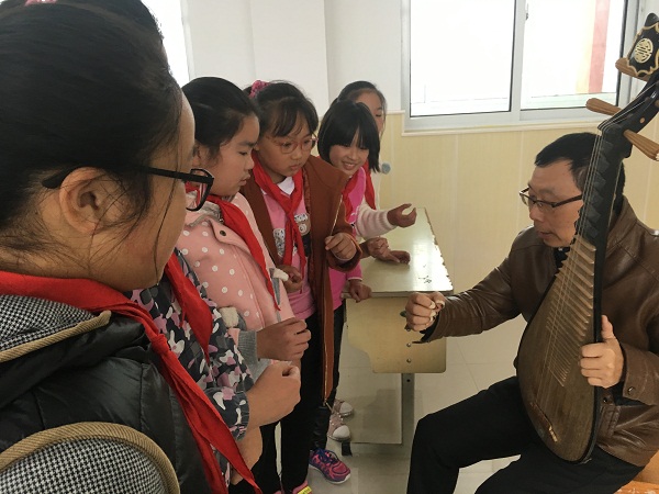 首先崔明老师给孩子们表演一支琵琶曲,娴熟的演奏技巧、精彩的器乐表现力,让孩子们惊叹连连、掌声不断。接着崔老师给孩子们讲解琵琶的基本技法,右手如何弹挑、轮指,左手如何按音、换把等,让孩子们懂得了琵琶最主要的表现力是如何体现的。在讲解了琵琶弹拨的基础上,崔老师又给孩子们指导阮、贝司的弹拨技巧。鲜明的音乐对比、极富感染力的乐曲,激起了双小孩子对器乐的兴趣,更加激发了孩子们对音乐的热爱之情。