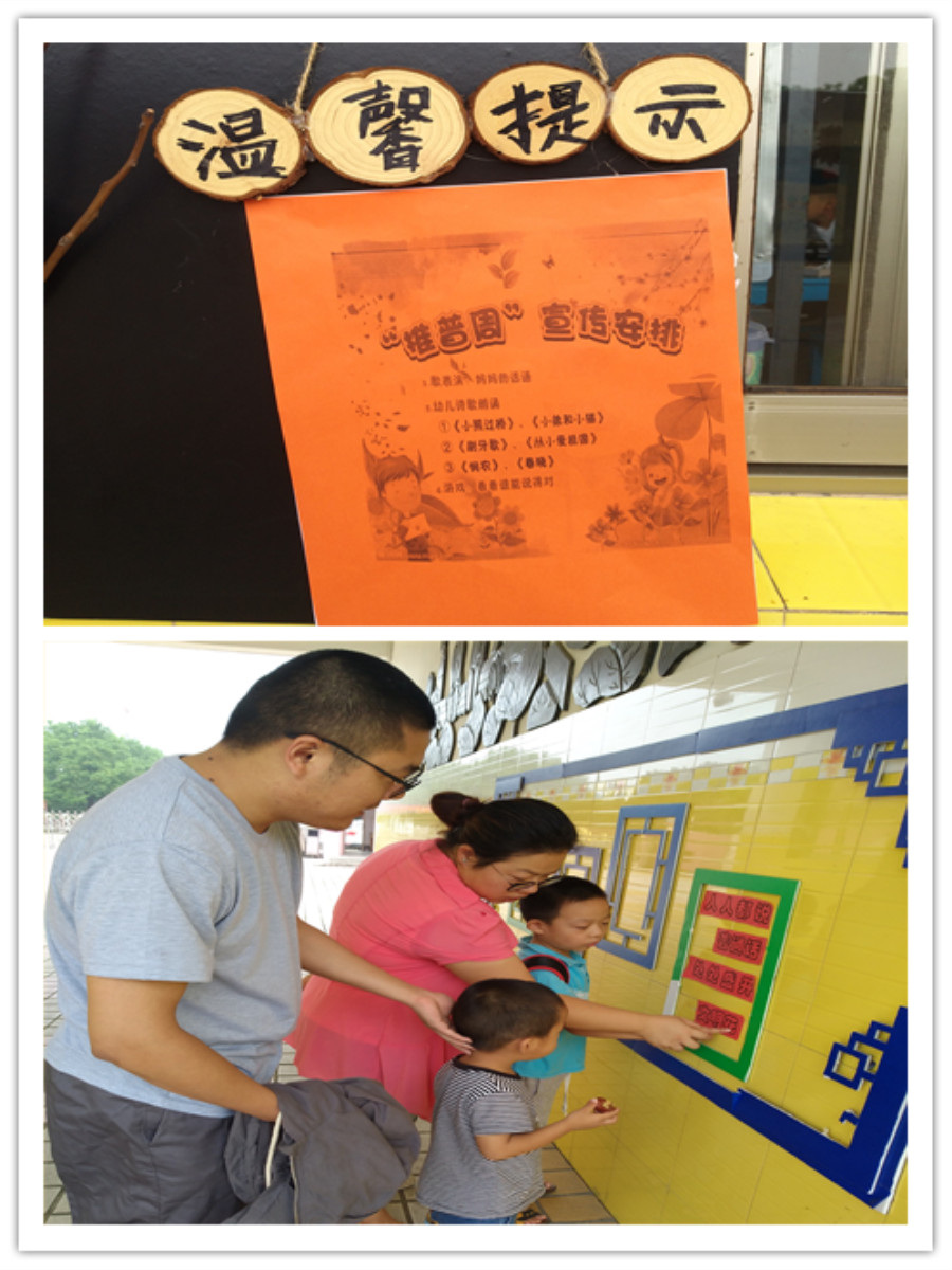首先从环境宣传入手,通过家园联系栏、微信群等平台张贴发送宣传标语、口号等,营造良好的语言文字氛围。