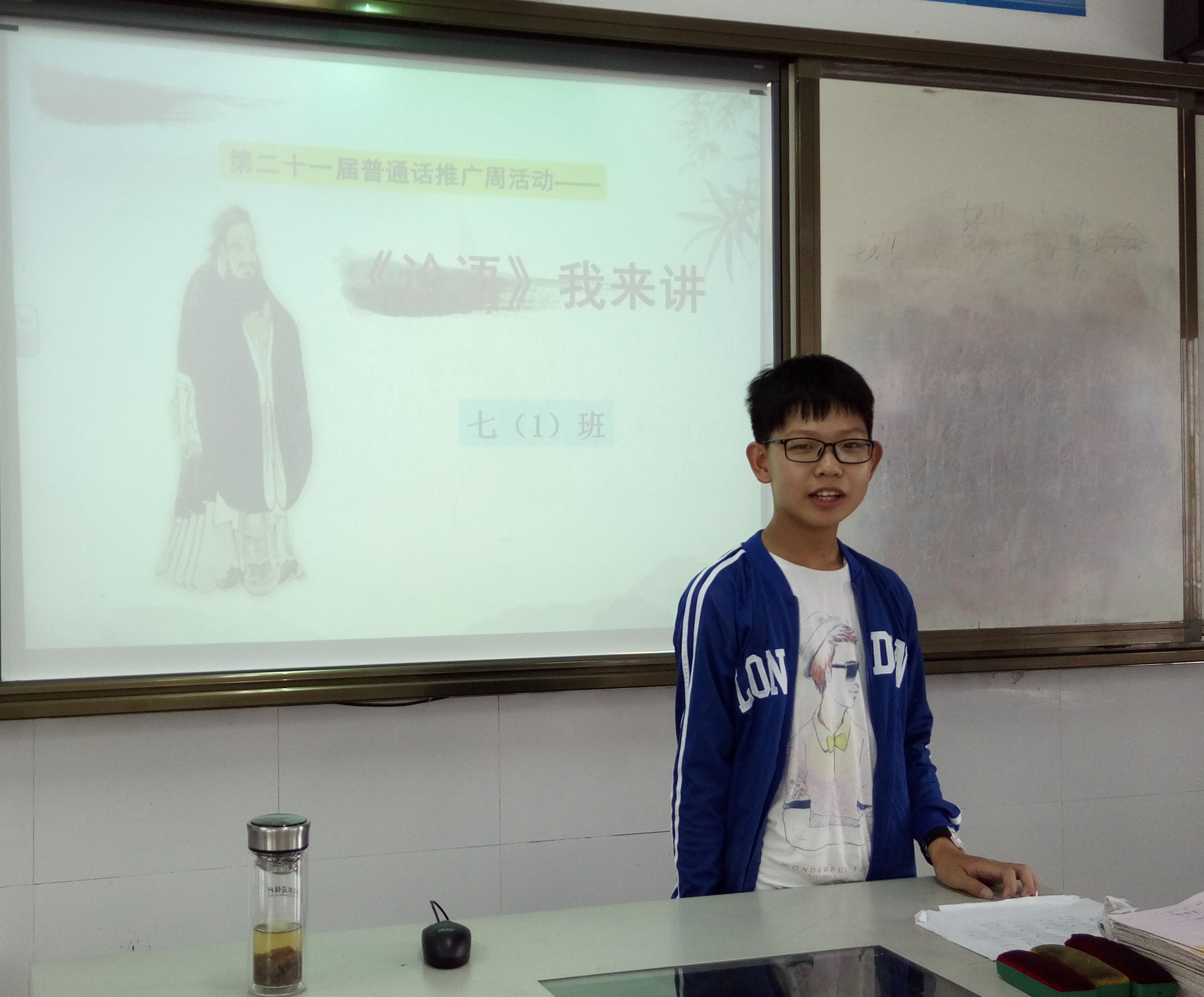 七年级开展“《论语》我来讲”主题活动。学生们在朗朗的诵读声中得到了儒家文化熏陶。