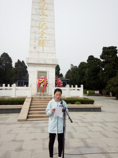 学生代表发言表决心:一定不辜负烈士们的遗愿,踏着烈士们的足迹奋勇向前,为实现中华民族伟大复兴的中国梦而努力奋斗!