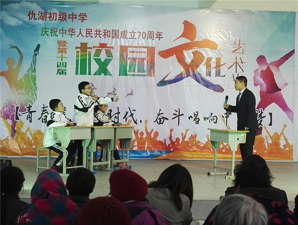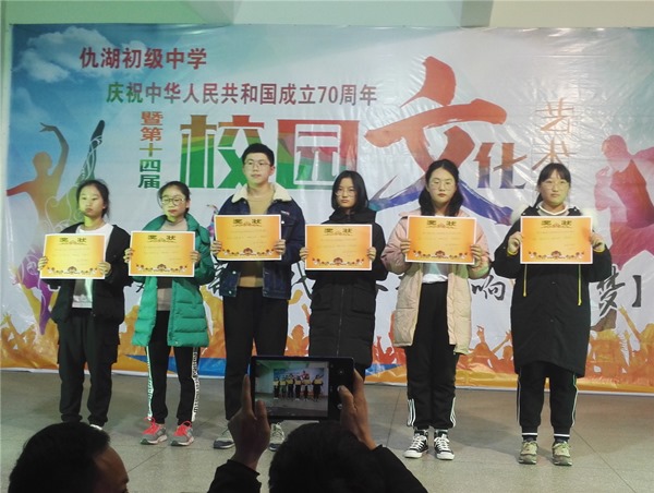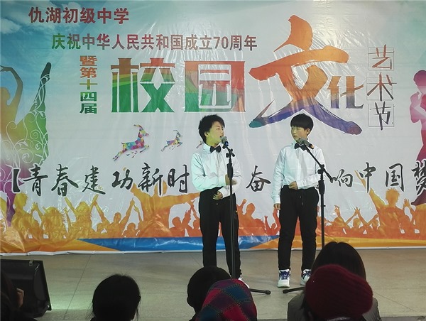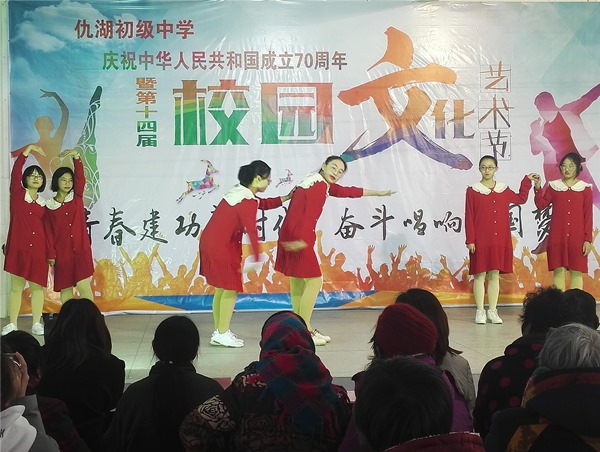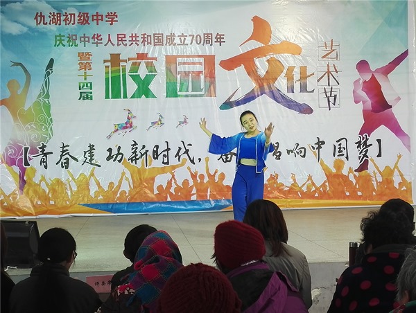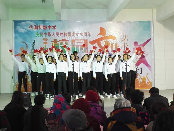 释放青春激情,点亮艺术人生。2019年11月30日,墩头镇仇湖初中“青春建功新时代,奋斗唱响中国梦”第十四届校园艺术节,在校园礼堂激情举行。全校近三百名师生、家长代表参加了此次艺术盛宴。