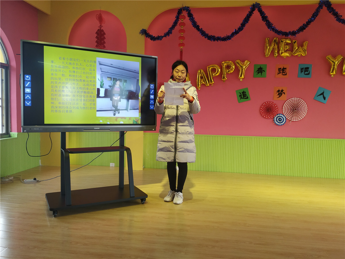 各班教师结合PPT总结一学年的成果经验,她们从不同方面分享了班级管理经验和智慧。反思一年来幼儿发展、班级管理、教育保育、安全工作、家园合作等工作中的创新做法、体会和感悟,以及来年工作的目标方向,把好的经验、方法和存在的困惑、解决的措施与大家分享,在快乐中分享,互相欣赏,互相借鉴,共同提高。