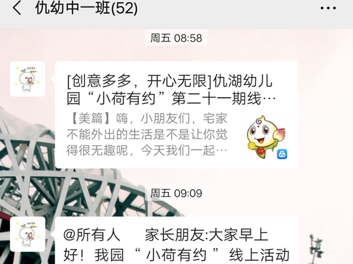 2020年,注定不平凡。一场突如其来的新冠肺炎疫情,让我们度过了一个特殊的鼠年春节,更让孩子们过了一个很“宅”的寒假。 疫情当前,仇湖幼儿园将继续通过网络沟通方式,让孩子在家中快乐游戏、健康发展。非常时期,让我们以智慧和力量,守护“小家”幸福,助力“大家”平安。