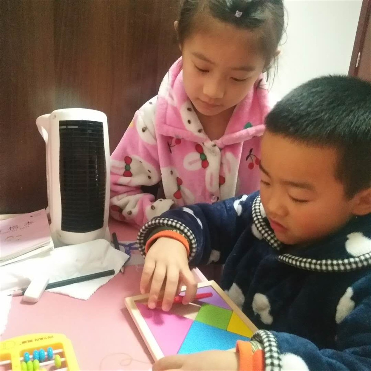 睡了个午觉,我和姐姐玩起了七巧板拼图,做游戏,可开心啦。