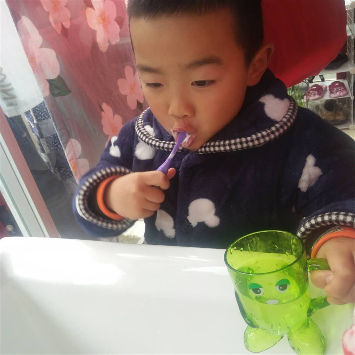 为了锻炼方向感和弹跳能力,在妈妈的指引下我玩起了游戏——鞋子大作战,认识了东西南北的方向。乖巧,能干的我是还是妈妈的得力小助手,看我帮妈妈择菜,擀面条呢!