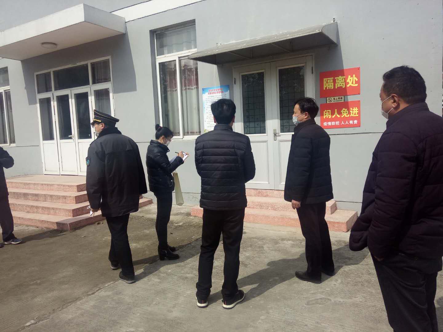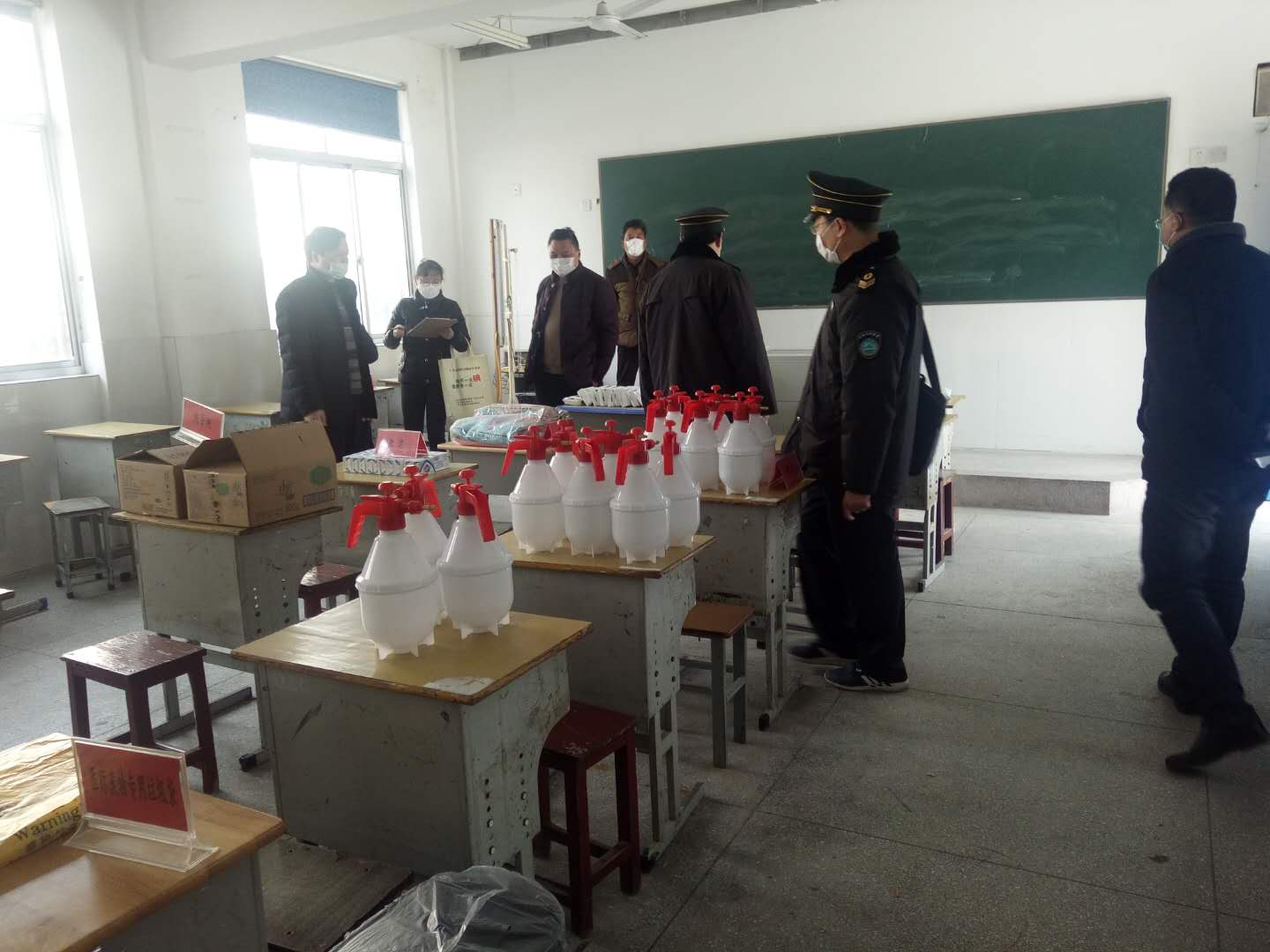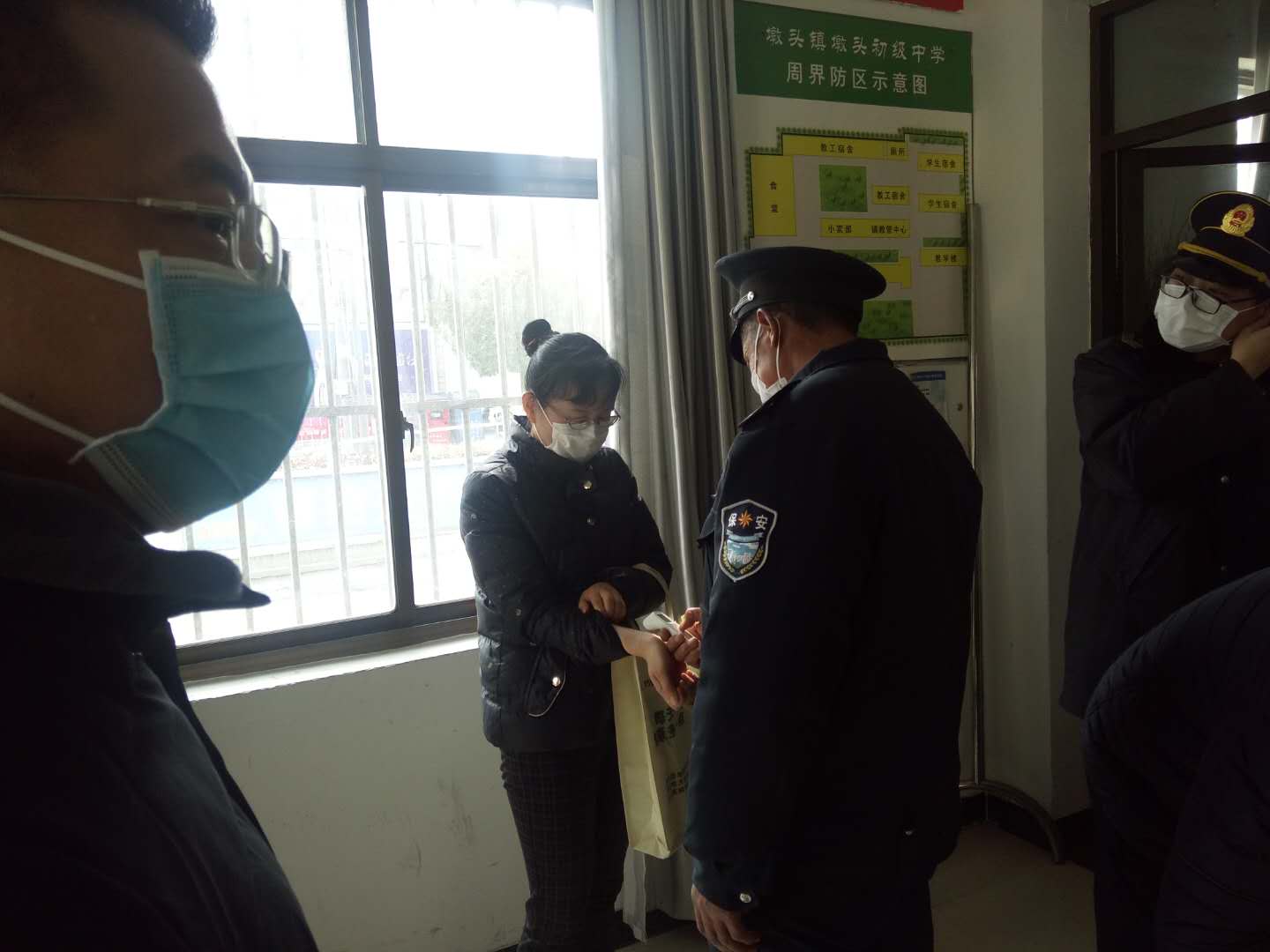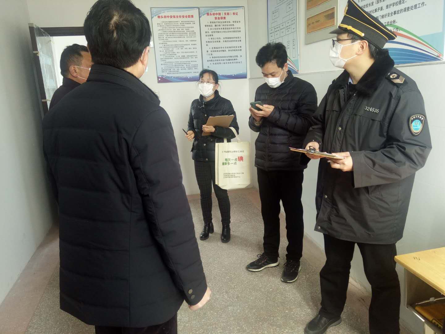 3月10日下午,海安市教体局基建科科长范加雨协同疾控中心、卫生监督所一行5人到墩头初中检查疫情防控工作。