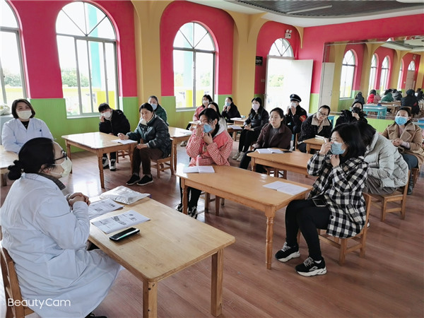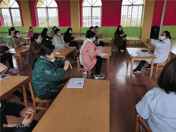 本次培训邀请了仇湖医院护士长崔益云和主任许晴主讲,崔护士长从新型冠状病毒肺炎的来源、新型冠状病毒的传播途径、师生个人防护以及园内环境卫生、防护服的穿脱流程、戴口罩的正确方法、消毒剂配兑比例与消毒技巧等多方面防疫知识向教职工讲解和梳理了全面的防疫措施、实际操作技能。