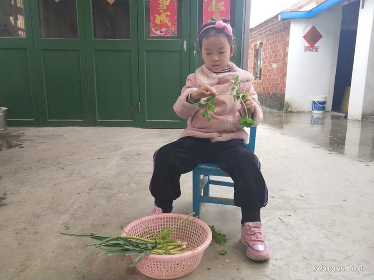 柯呈:咦!奶奶在择菜,我去帮忙择菜咯!