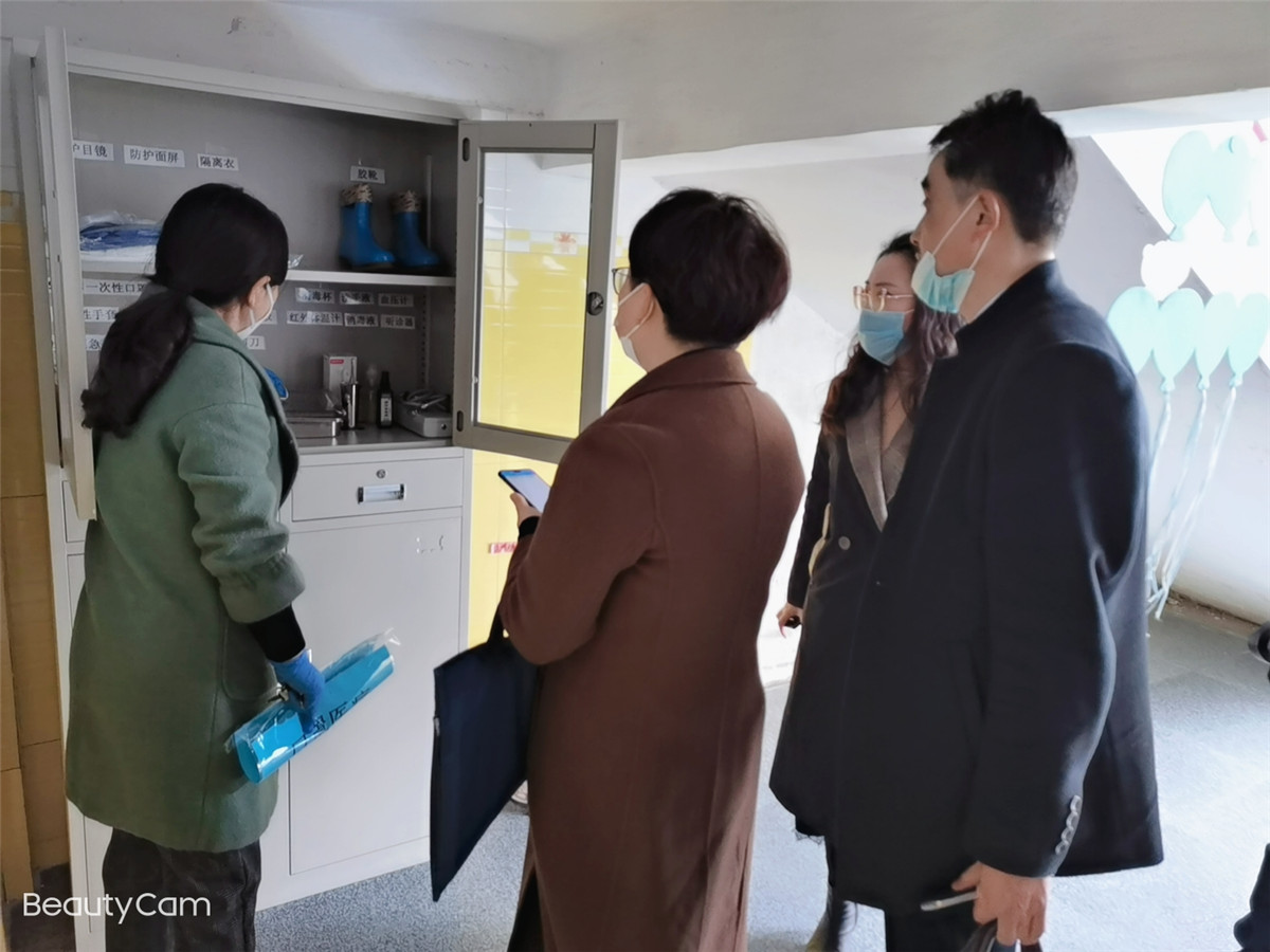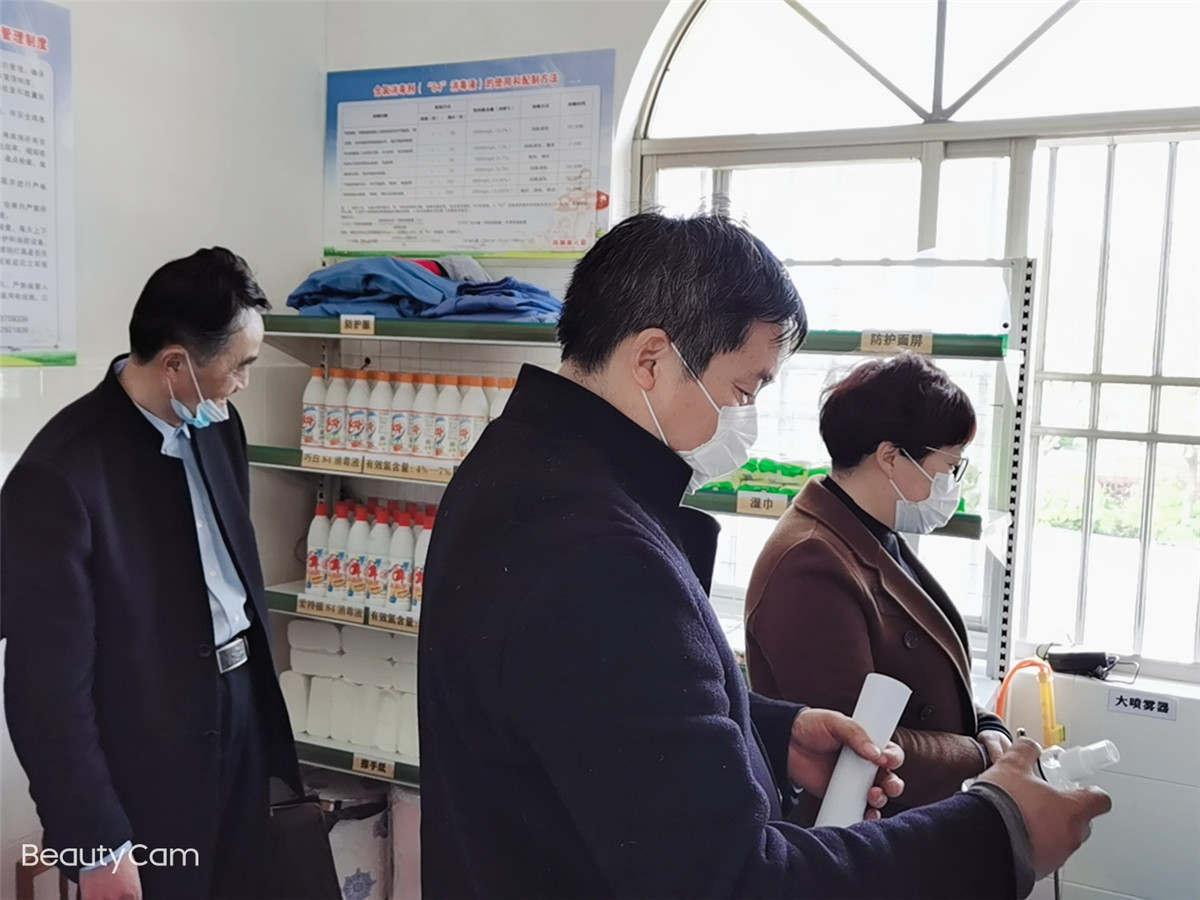 检查组查看幼儿园的防疫物资储备情况,为配合打赢这场“防疫”攻坚战,仇湖幼儿园全力筹措园所所需物资,检查组看到医用口罩、消毒洗手液、手持体温计等防疫物资存放整齐、较为充足时,称赞幼儿园防疫工作行动早,工作具有前瞻性。