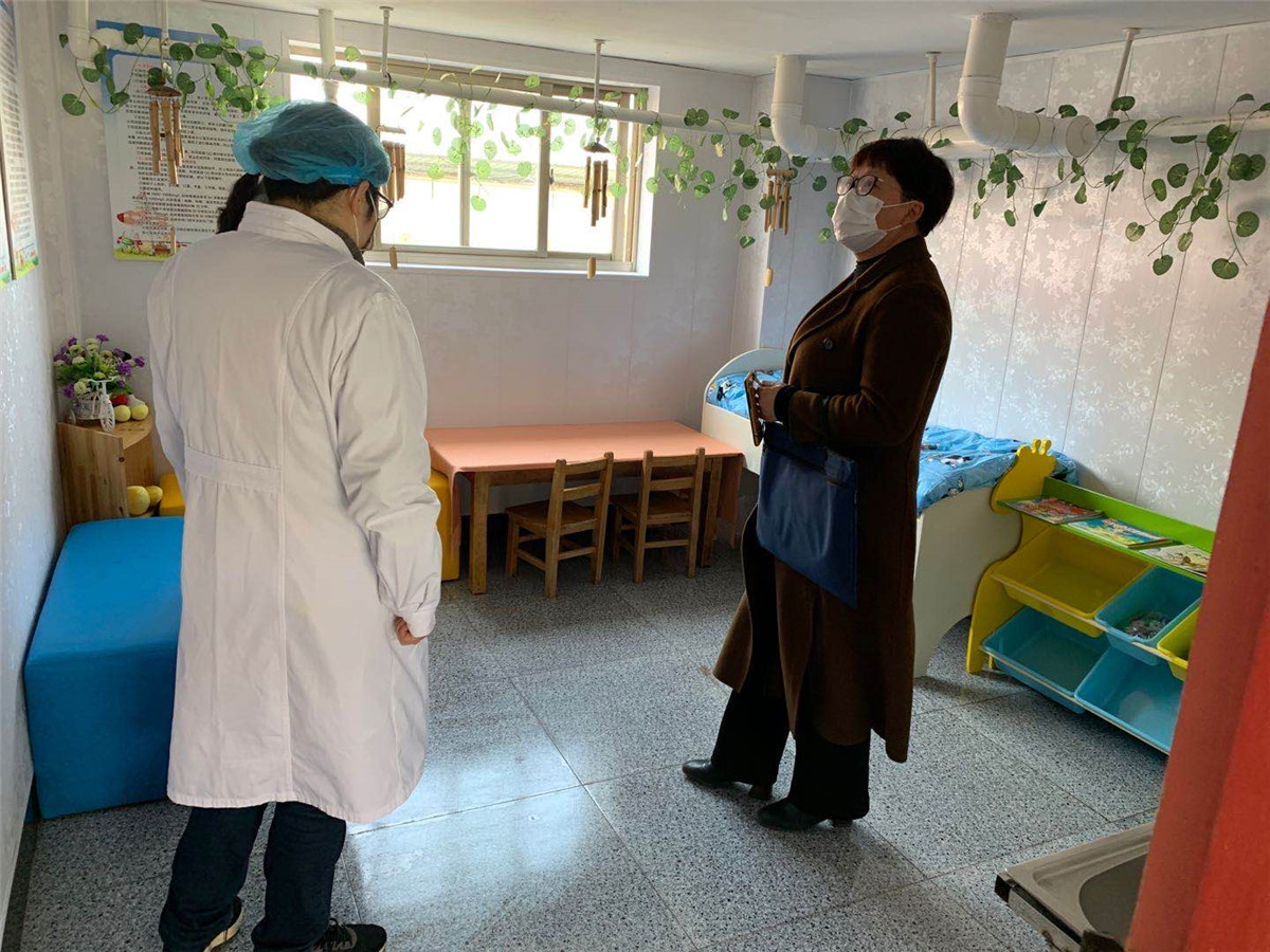 检查组一行走进个各个活动室,室内通风,桌椅、橱柜、合理摆放并消毒,各班教室内的游戏桌用精美的隔板分开,确保每个小朋友之间的安全距离。卧室、盥洗室按要求一应物品摆放整齐、到位。