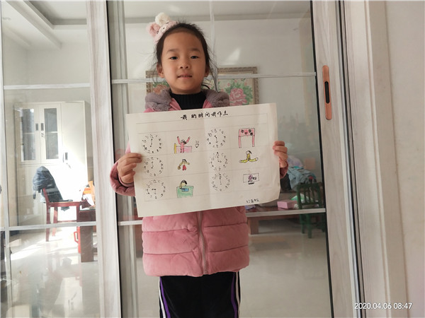 在这个特别的假期里,用多种形式制作作息计划,图画、符号、简单的文字都是最直接的表达,作息表图文并茂,孩子们的生活多姿多彩,宅而不慌,宅而有序,在家长的配合下,孩子们制作“我的时间我做主”的过程中认识了整点和半点,有了初步的时间观念,对未来的学习历程有着非常重要的作用,也为入小学作了准备。