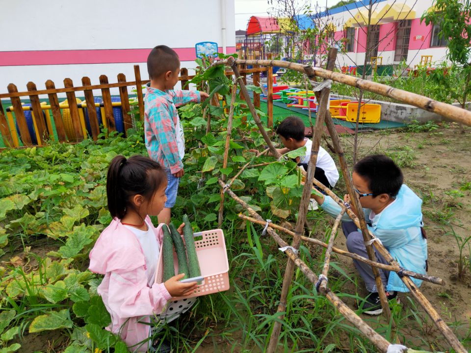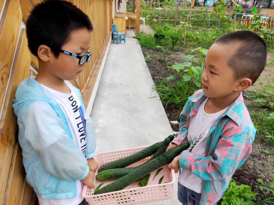 有播种就会有收获,孩子们在经历挖洞、播种、埋土后,终于小小的种植园地迎来了收获的季节。孩子们走进种植区,在绿叶丛中寻找起绿绿的黄瓜,尖尖的辣椒来,沉浸在劳动的快乐中,不仅仅收获满满,还有那美好的心情。