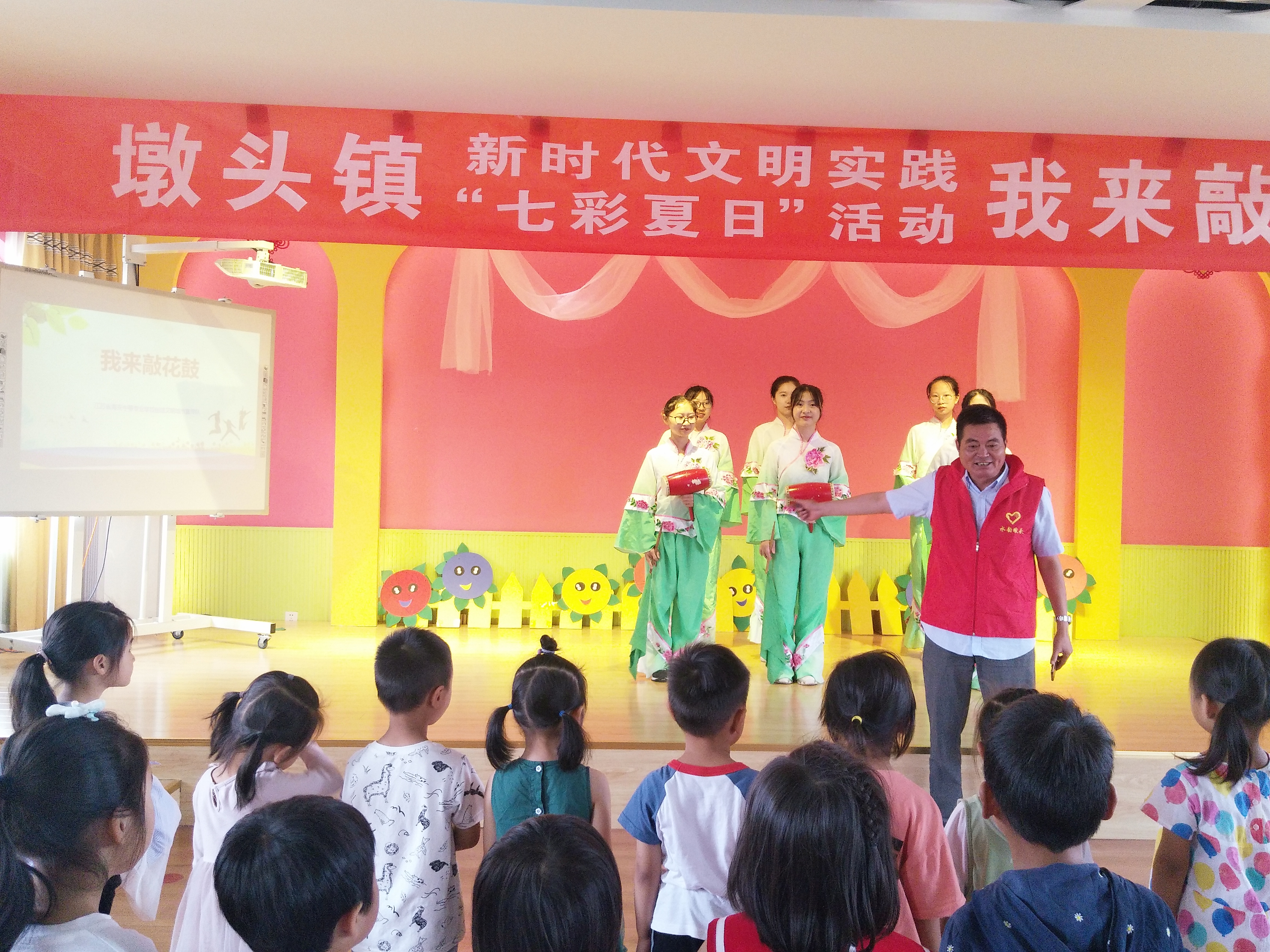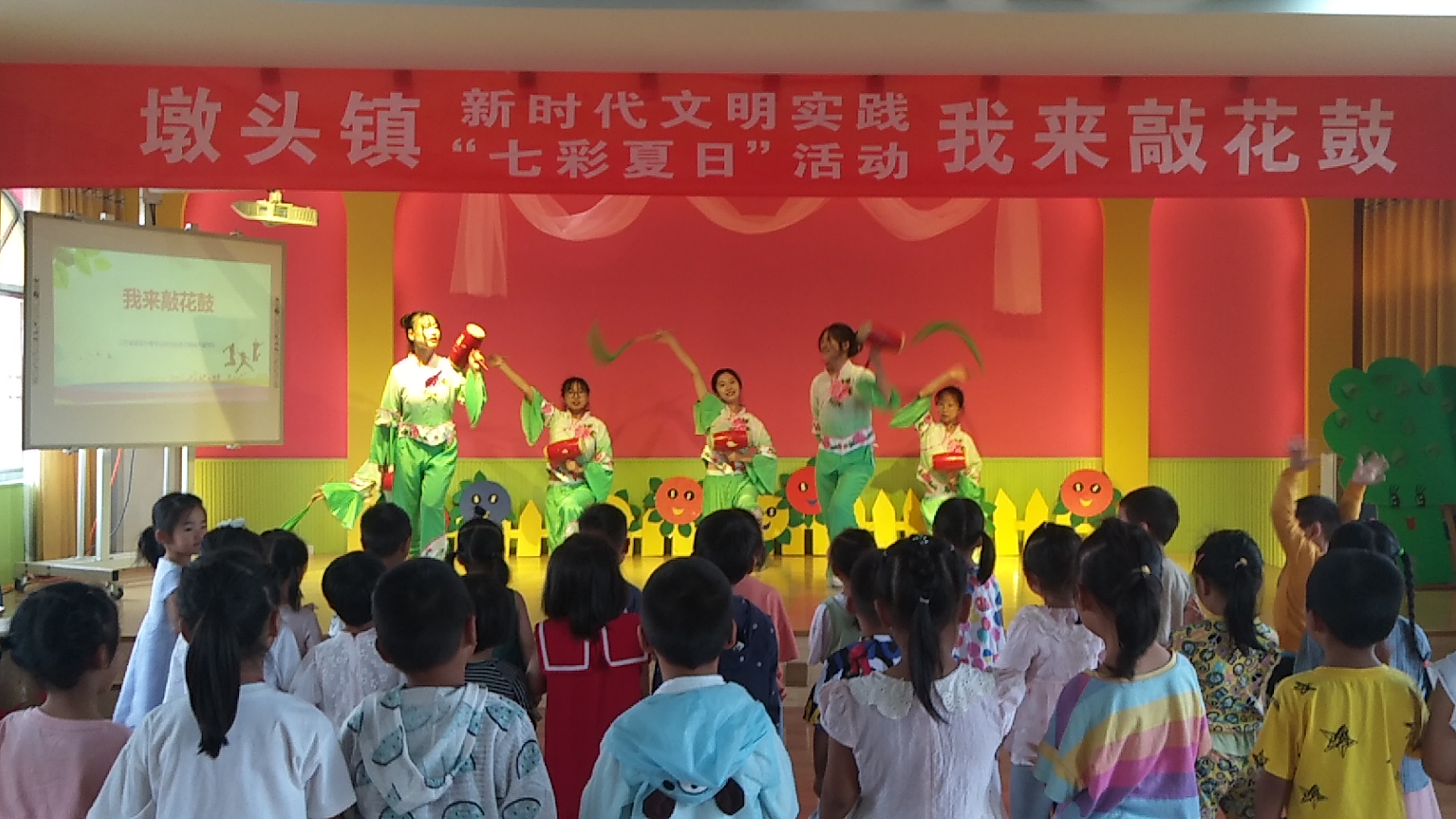 为弘扬中华民族优秀传统文化,营造“七彩夏日欢乐多 非遗文化伴成长”的浓厚氛围。7月15日,海安市墩头镇文化服务站邀请了海安中专“海安花鼓”传承训练学员走进仇湖幼儿园,开展“我来敲花鼓”活动,让孩子们近距离领略海安花鼓的魅力。