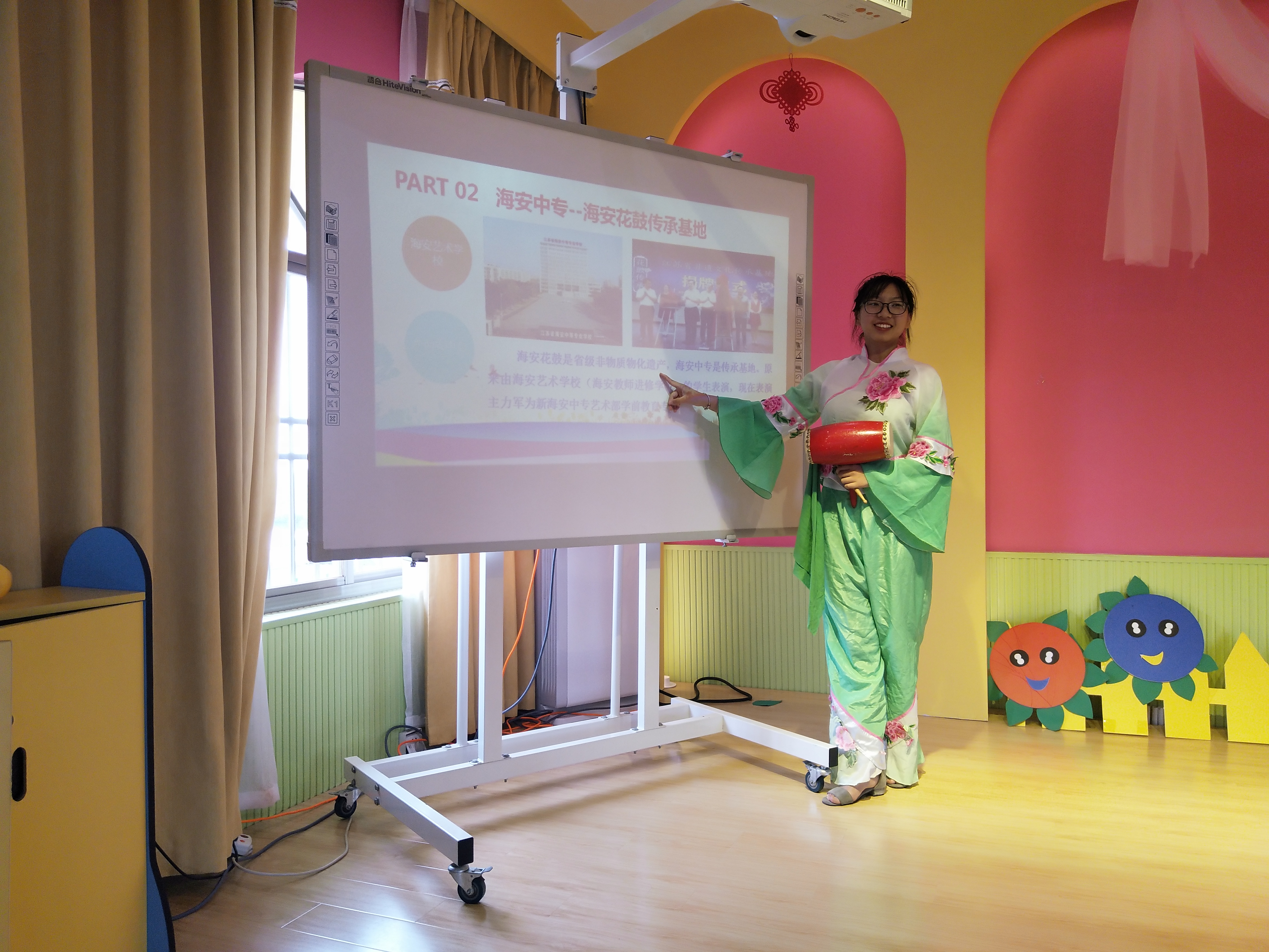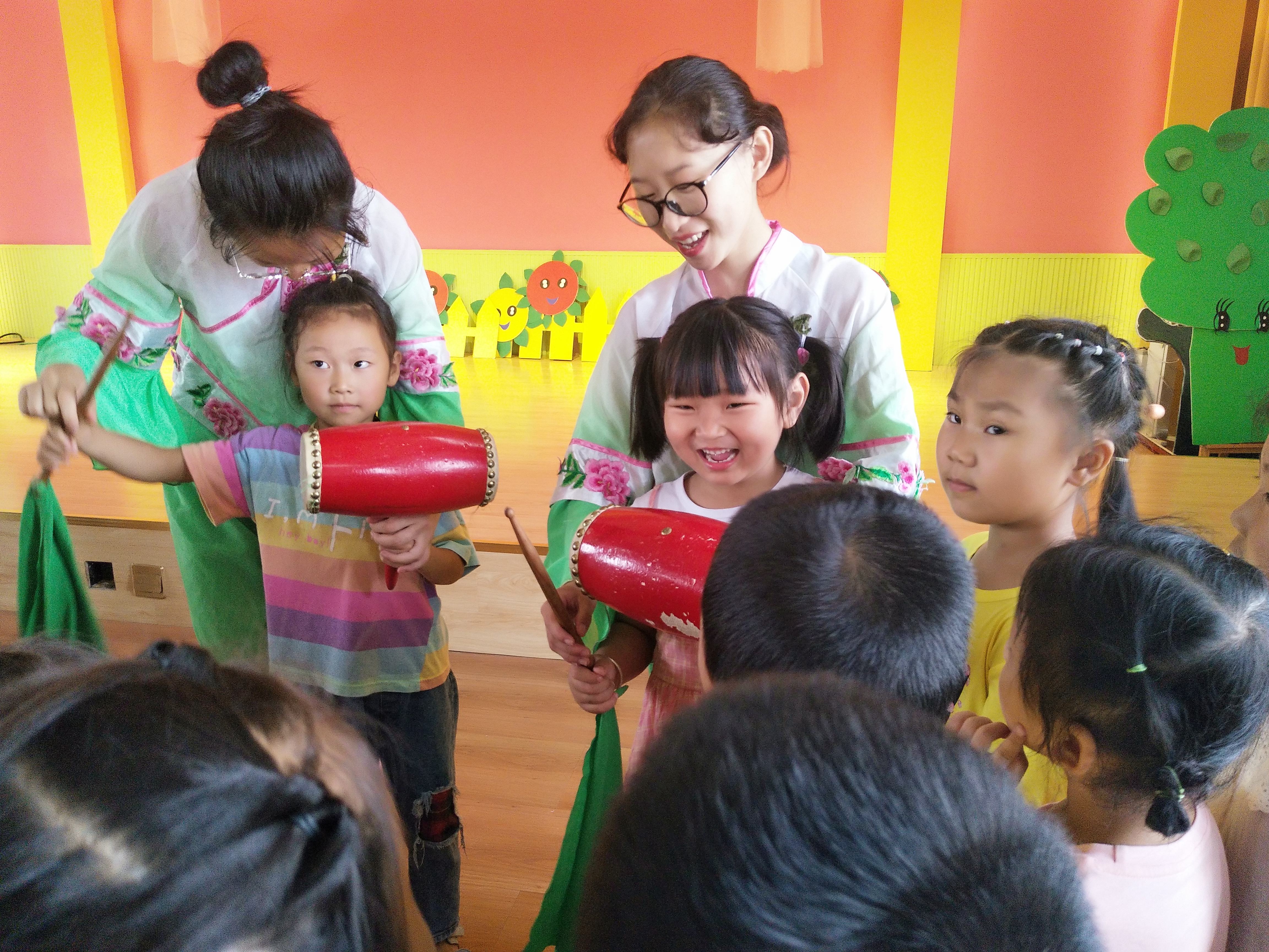 学员们为小朋友们讲解了“海安花鼓”的历史和获得的荣誉,表演了“海安花鼓”,详细讲解了“海安花鼓”表演的技巧、动作、节奏和姿势,手把手地教小朋友们如何敲打“海安花鼓”,活动现场充满了欢声笑语。