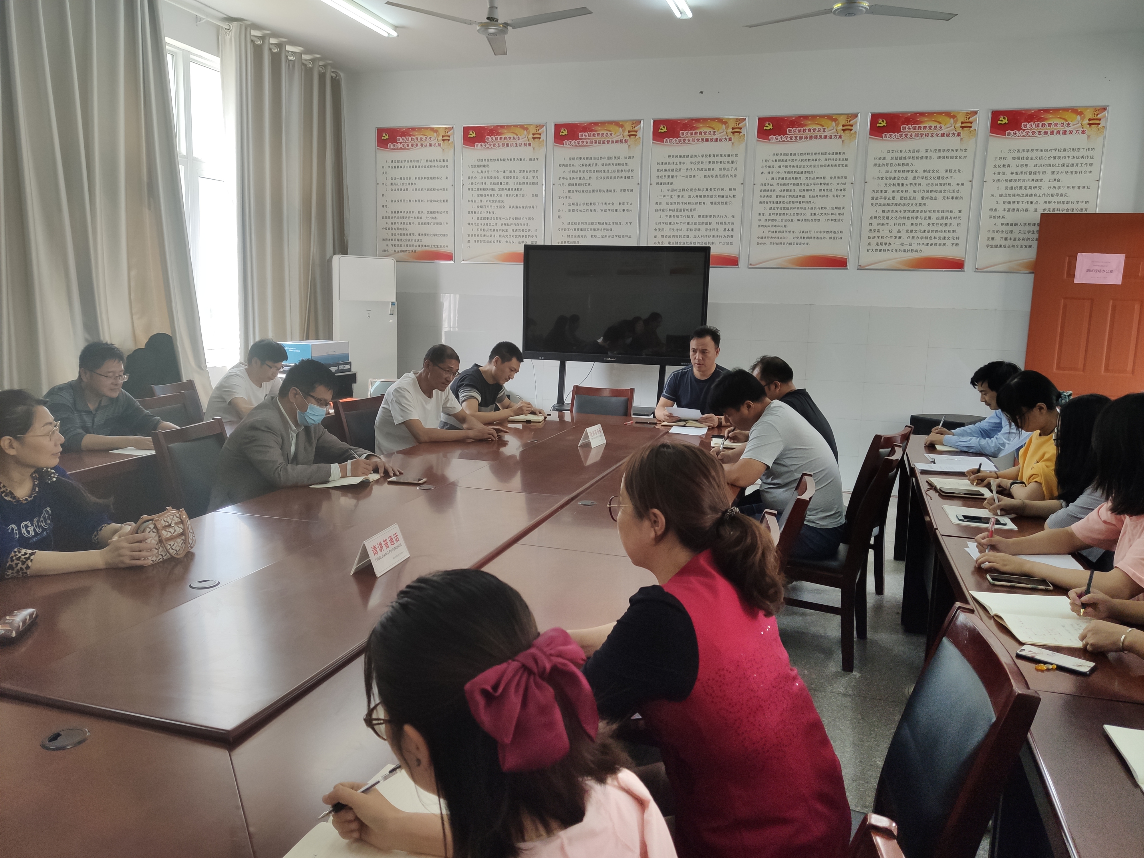 为认真履行《中小学教师职业道德规范》,落实关于《开展违规收受礼品礼金问题专项监督》的通知,营造风清气正的育人环境,进一步增进教师育人的责任感和使命感,恪尽职守、敬业奉献,真正成为学生尊敬、家长信任、人民满意的“四有”好老师,9月30日,墩头镇吉庆小学召开“违规收受礼品礼金问题”工作会议。
