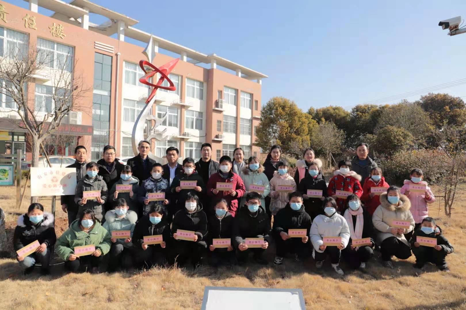 最后,在热烈的掌声中,开班仪式结束。参加活动的领导和“爱心助学班”全体成员合影留恋。