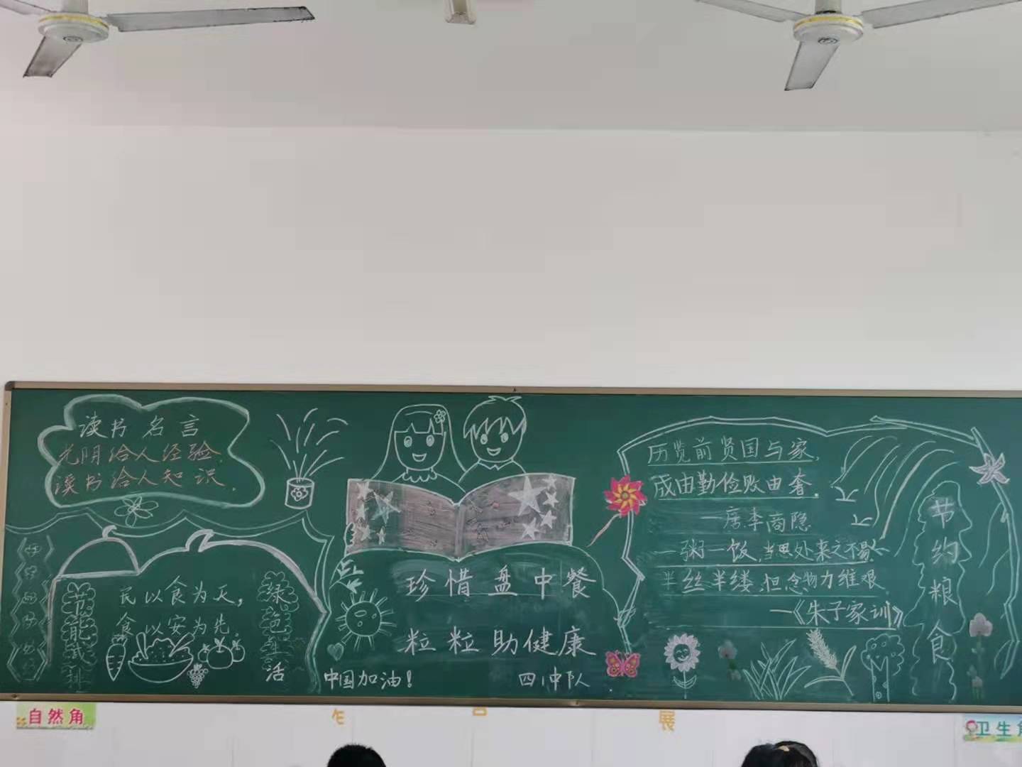 各班设计黑板报,进行知识宣讲与教育,并召开了营养知识主题班会,介绍营养健康知识、观看营养健康宣传视频。会后,学生利用课余时间用制作手抄报的形式号召大家合理饮食,不能暴饮暴食,更不能浪费粮食。