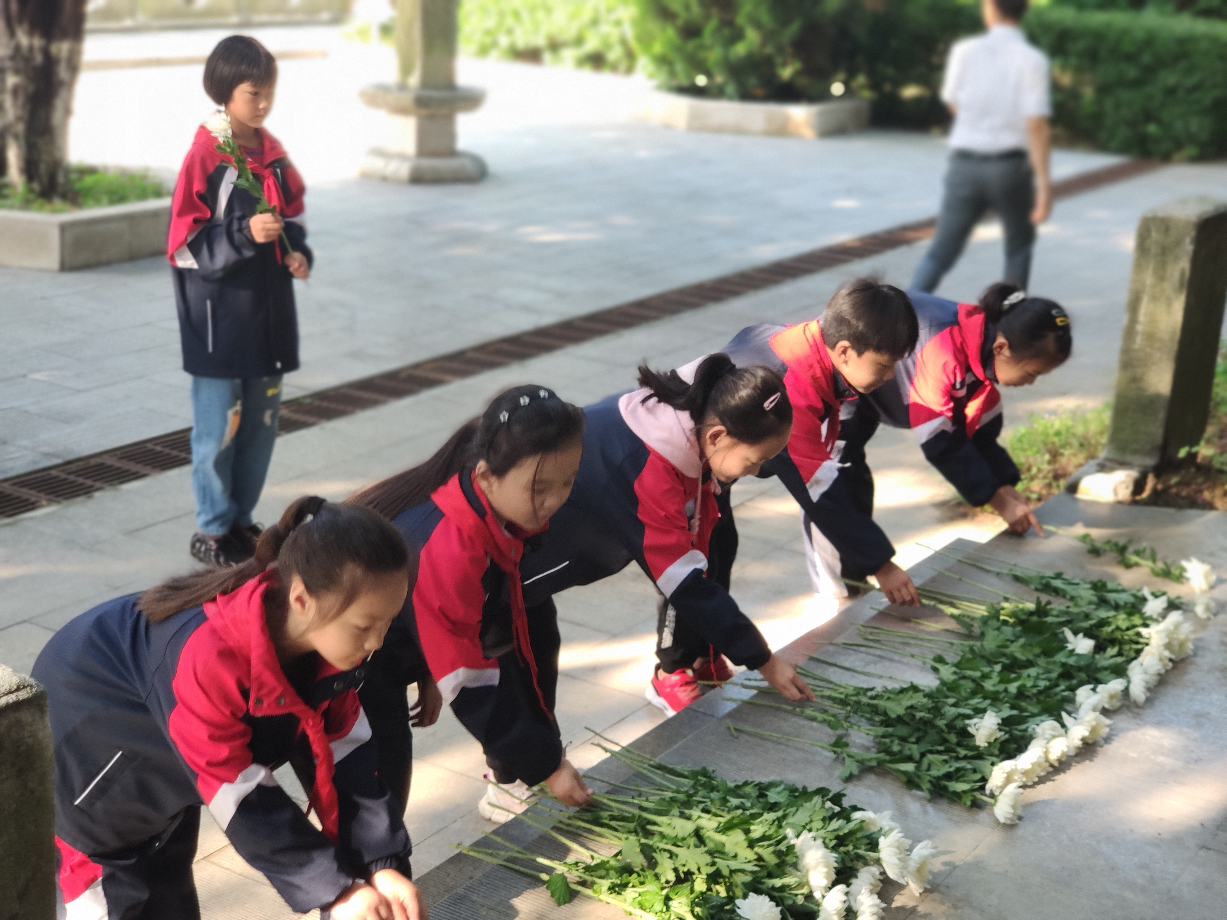 铭记历史 缅怀先烈 来源: 发布时间:2021-10-08 00:00:00 浏览次数: 次 【字体:小 大】 为追念革命烈士高贵品质,继承发扬先烈遗志,传承民族精神,9月30日,值第八个全国烈士纪念日之际,墩头镇小学教育集团吉庆校区的中队辅导员和少先队员代表来到新四军联抗烈士陵园缅怀革命先烈。少先队员向纪念碑敬献花篮,随后全体师生肃立默哀,队员们向纪念碑行队礼,寄托对革命先烈的哀思。结束后,全体队员绕墓一周并敬献鲜花。 本次活动,增强了少先队员的责任感和使命感,进一步弘扬革命烈士的爱国主义和革命英雄主义精神,让少先队员懂得自己肩负起的责任,争做新时代的好少年。 分享到: 【打印正文】
