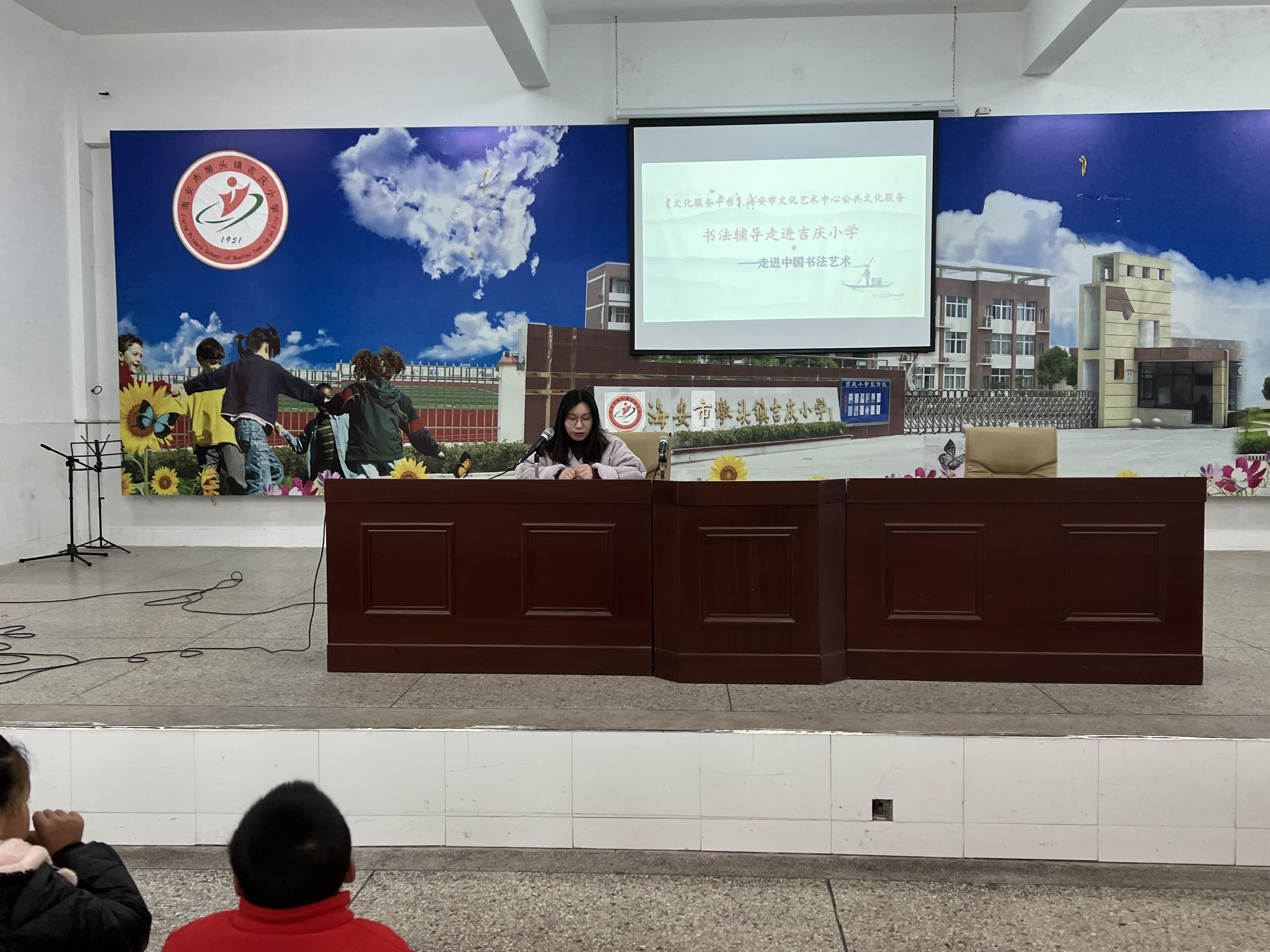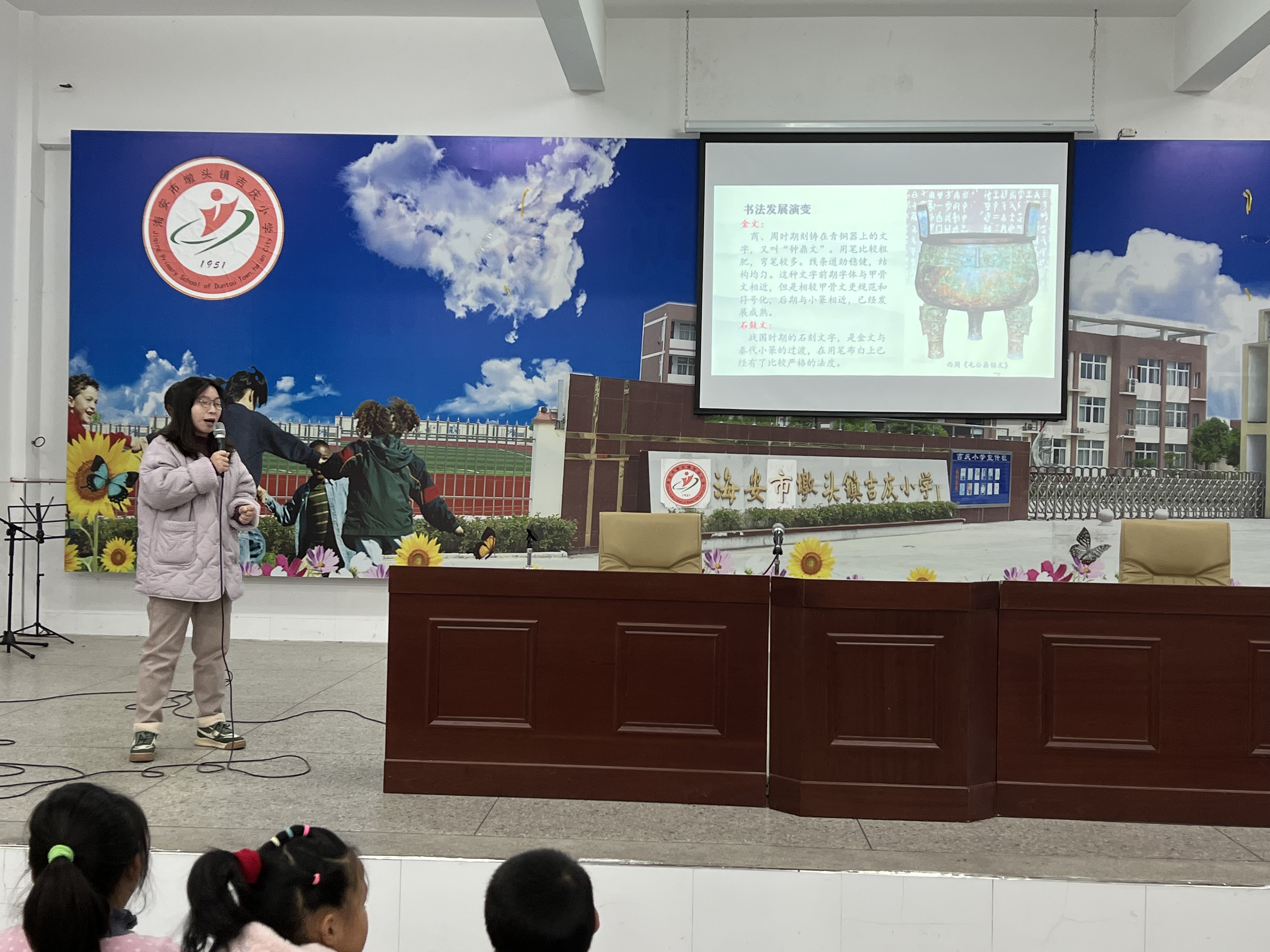 书法是民族艺术的精华,为了传承与弘扬中华民族传统文化,进一步增强学生写规范字的意识,丰富校园文化底蕴,11月30日,海安市文化艺术中心的黄老师来到墩头镇小学教育集团吉庆校区进行书法辅导讲座。