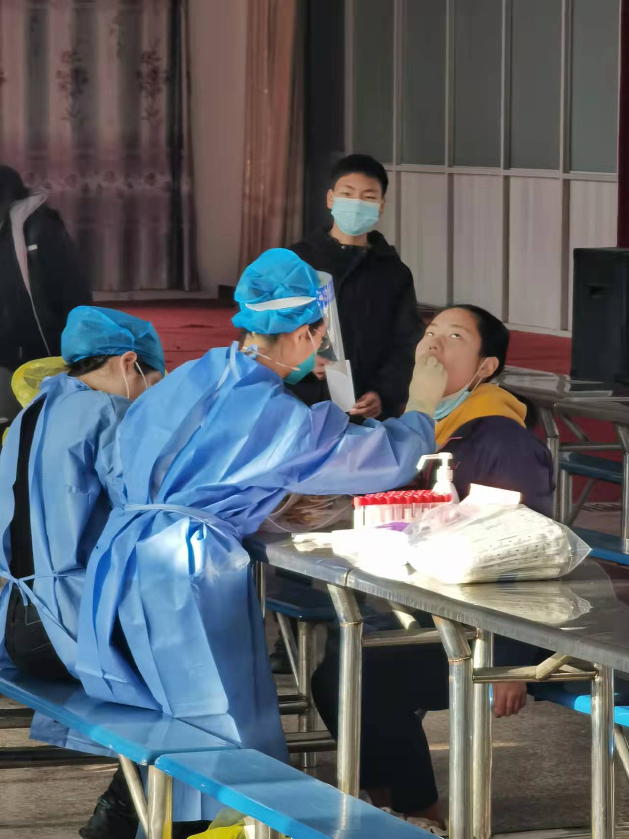 15日上午7点核酸检测开始,各班级按照指定路线到场,保持一米间距,佩戴口罩,按照工作人员指示,十人一组,进行核酸检测。核酸检测工作安静有序,快速流畅。师生员工积极配合,耐心等候,逐一完成检测。