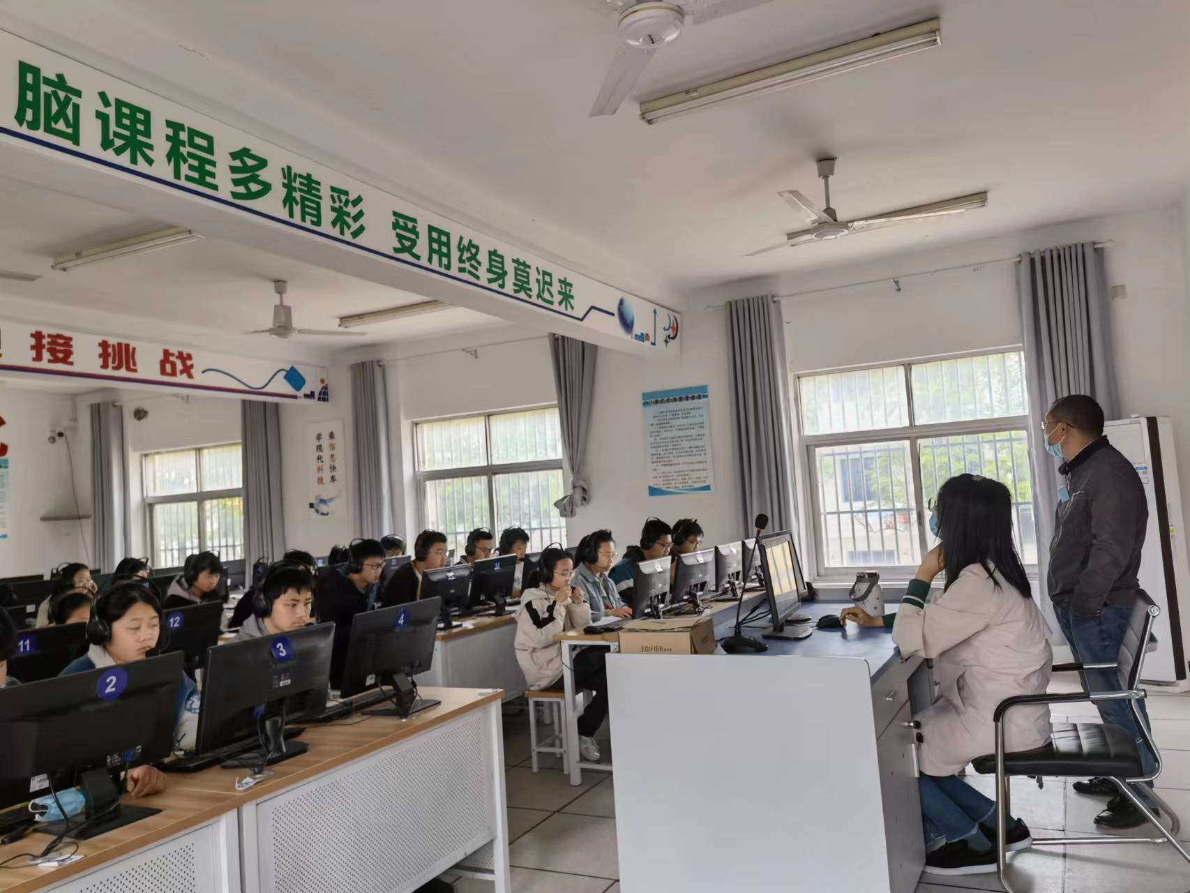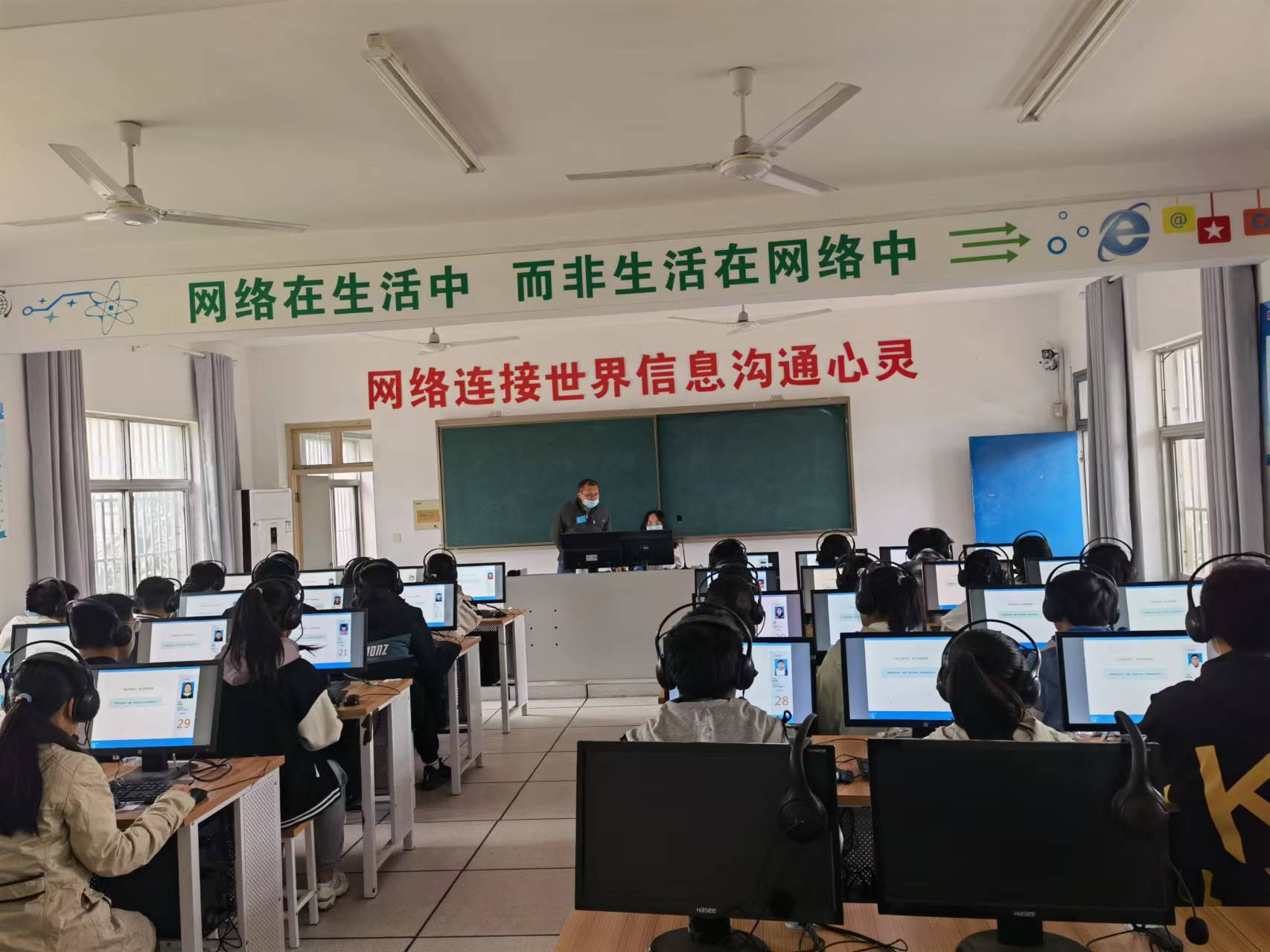 考试前,学校认真检查机房的软硬件配置情况,并对系统操作员和相关工作人员进行了培训,使其明确考试纪律、监考要求及考试操作过程;按照疫情防控要求,21日下午对所有参考学生和工作人员进行了核酸检测,对考场进行了消杀,每场考试结束后,迅速用酒精纸巾对电脑、耳麦、话筒进行擦拭。